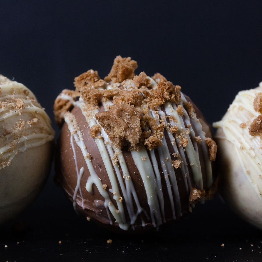 Diese heiße Schokoladenbombe besteht aus feinster belgischer Schokolade. Sie ist gefüllt mit cremiger Trinkschokolade und kleinen Marshmallows. Gewürzspekulatiusstückchen sind in der Schokolade eingearbeitet sowie auch in der Schokokugel enthalten. Und das Highlight: Spekuloos-Creme (Lotus Biscoff)!