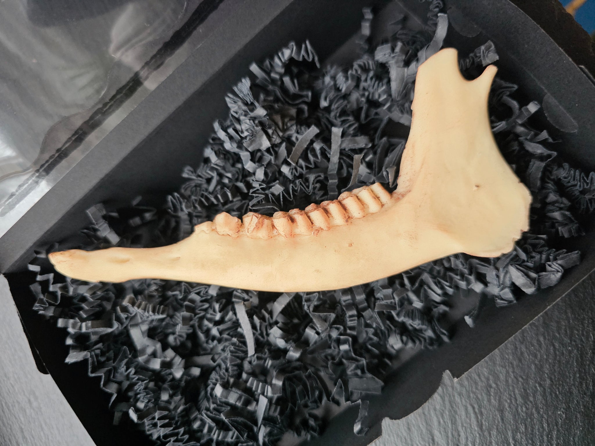 Der Kieferknochen wird aufwendig verpackt und in einer schönen Geschenkbox geliefert.